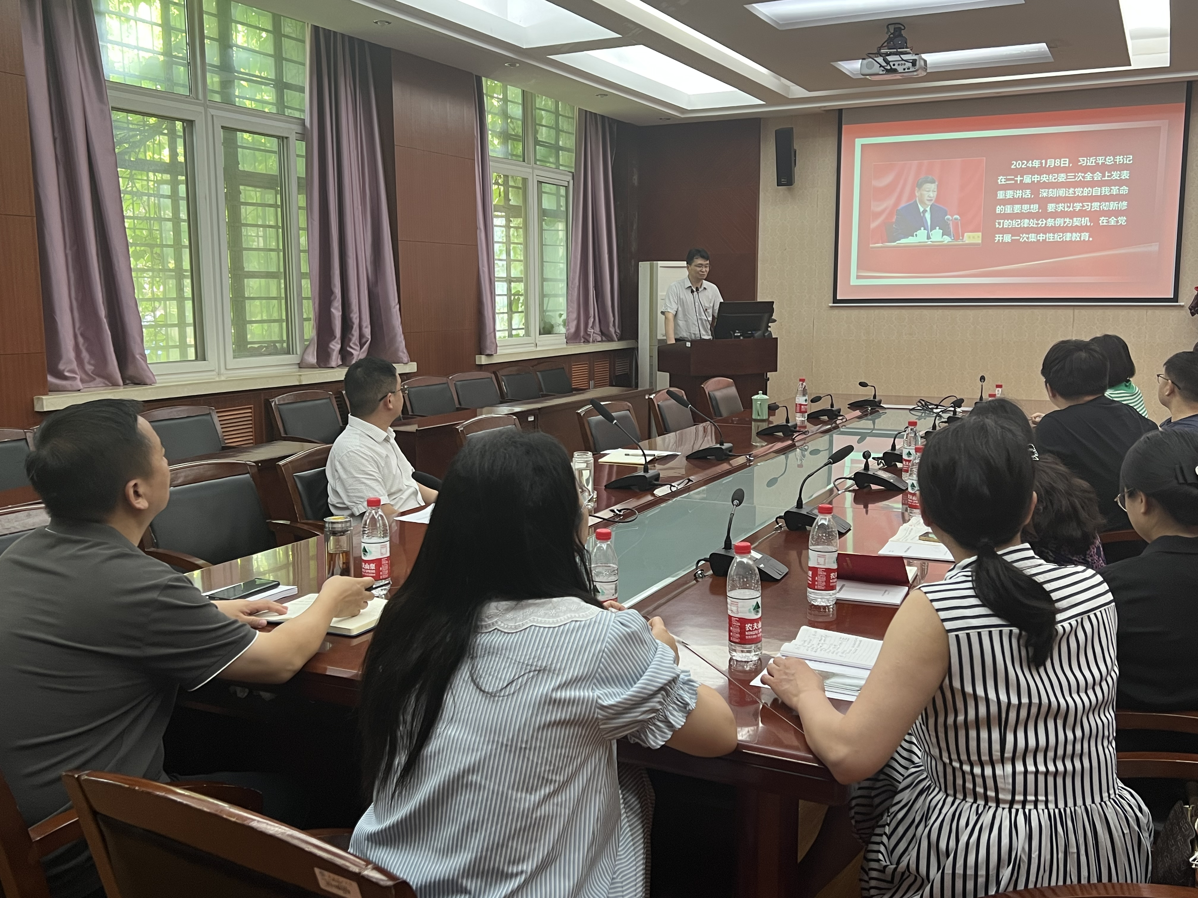 他最后指出,在全党开展党纪学习教育,是以习近平同志为核心的党中央作出的重大决策,要认真学习新修订的《中国共产党纪律处分条例》,自觉把增强纪律意识、守牢纪律底线,持续锤炼党性、严格约束言行,做到心有所畏、言有所戒、行有所止,把开展党纪学习教育落实到教书育人工作中,持续推动党纪学习教育走深走实。