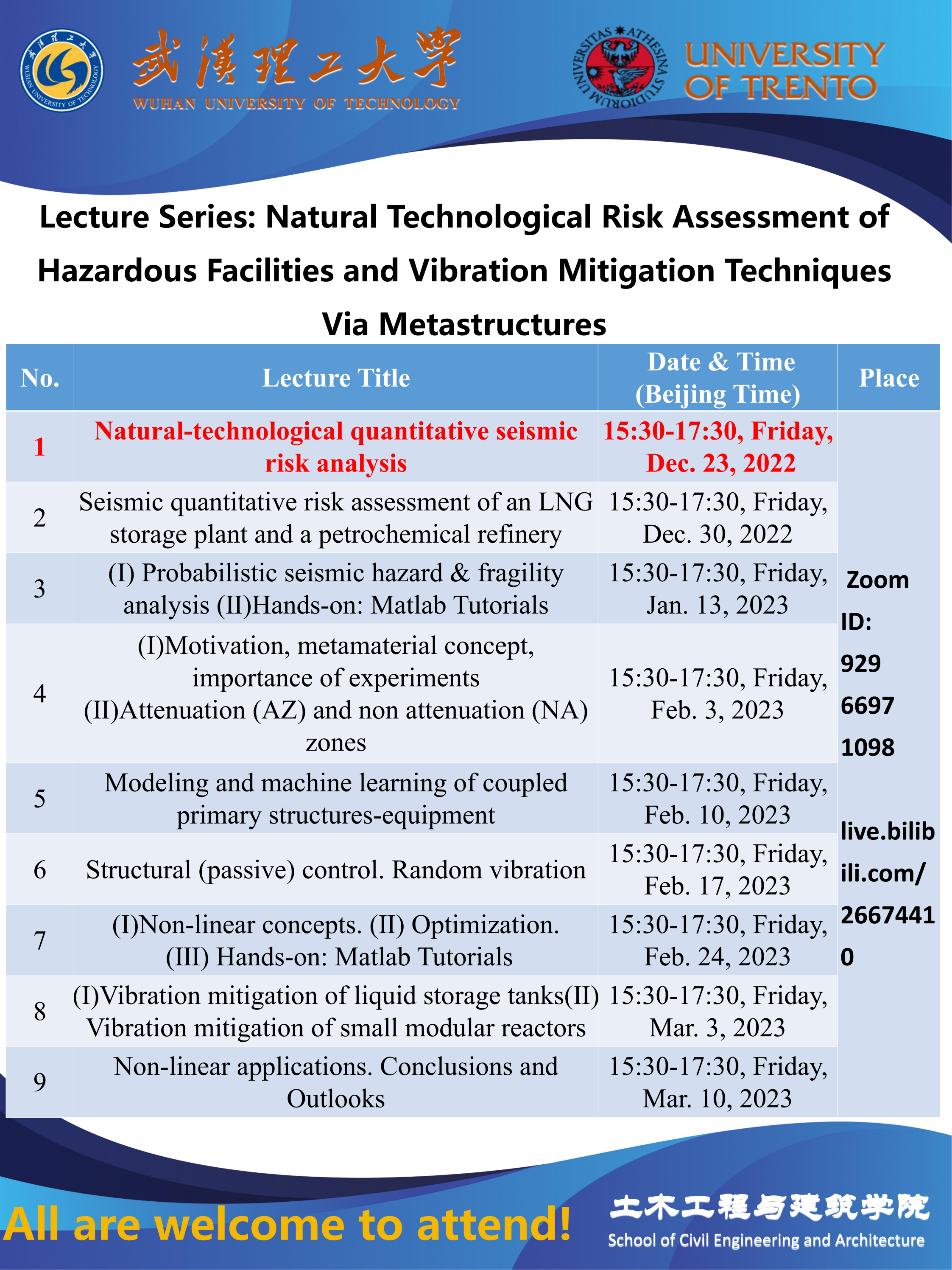 Lecture Series: Natural Technological Risk Assessment of Hazardous Facilities and Vibration Mitigation Techniques Via Metastructures