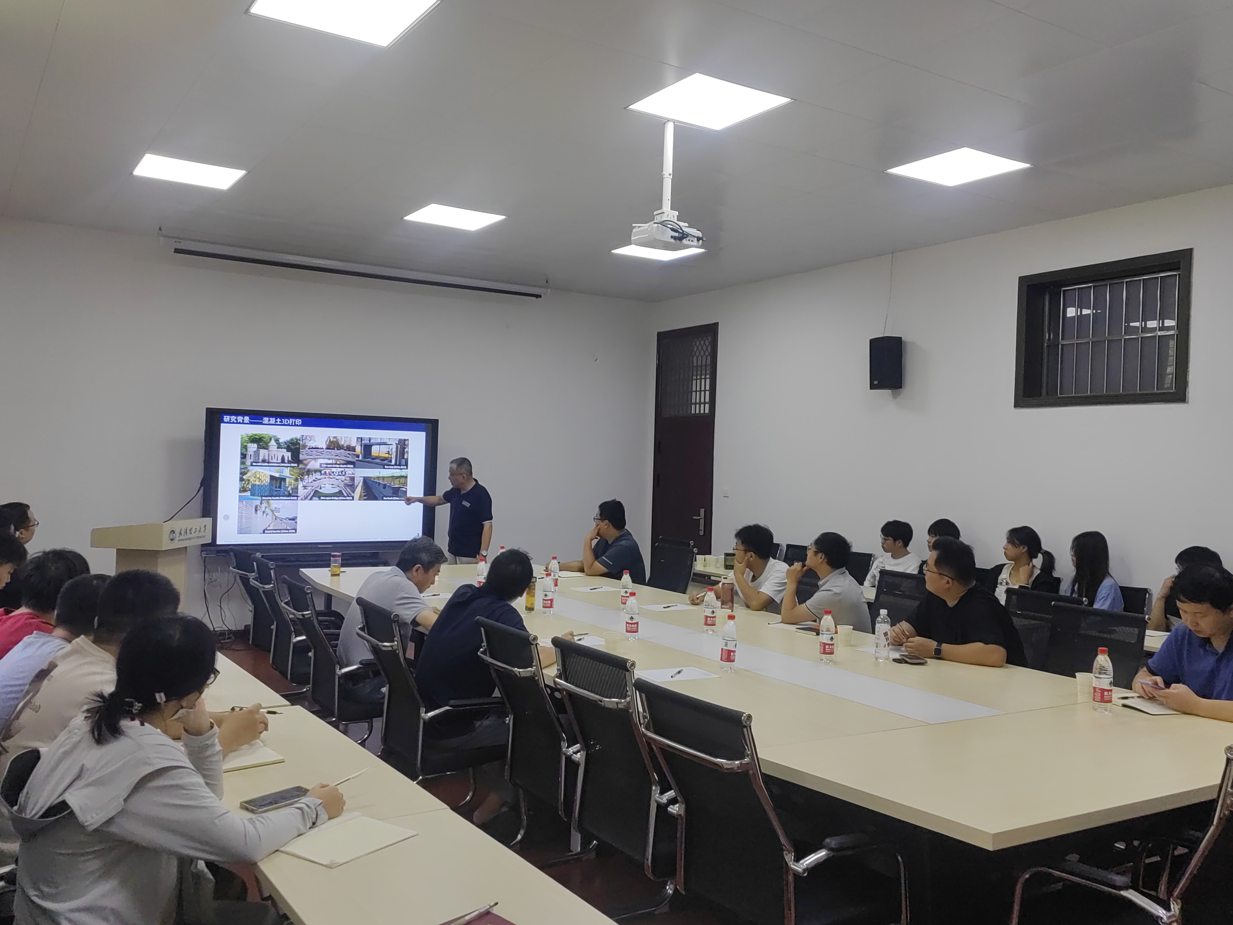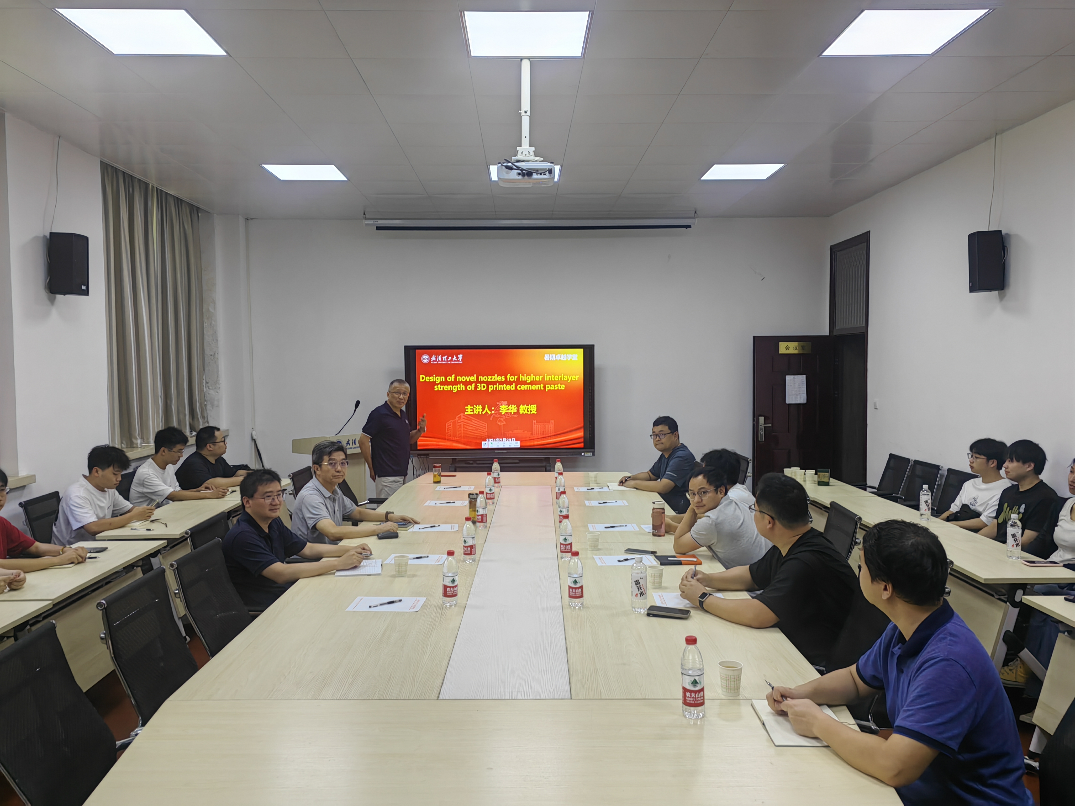离校前,7月23日上午李教授应邀再次为色情图 部分师生作了一场精彩的学术报告。李教授报告题目是:“Design of novel nozzles for higher interlayer strength of 3D printed cement paste(提高3D打印水泥浆体层间强度的新型喷嘴设计)”。报告会由刘沐宇教授主持。