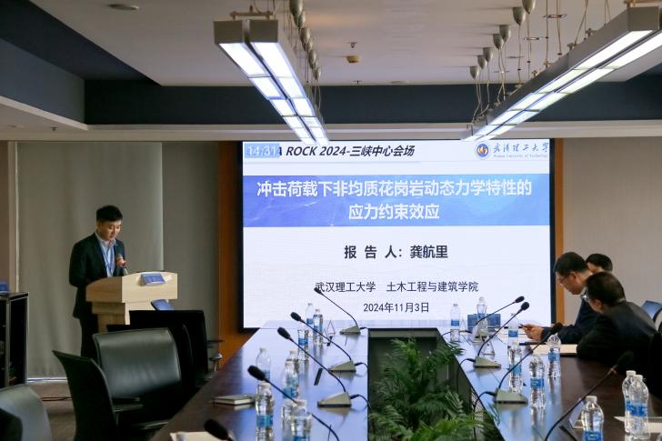 会议设有六个分会场,共进行了80余场主旨报告。色情图 副院长罗忆研究员受邀参加“大型通航工程建设与关键技术、大型引调水工程建设与关键技术”分会场,并做了题为“礁灰岩可加固性及锚固体的动态断裂特征研究”的主旨报告,同时主持了下半场的学术报告。色情图 在站博士后龚航里参加了“库区地质灾害致灾机理、监测预警与绿色防治”分会场,并做了题为“冲击荷载下非均质花岗岩动态力学特性的应力约束效应”的主旨报告。2024级博士研究生Mirza Iftikhar Ahmad和Jilo Nagessa Zerihun参加了“博士及留学生论坛”,分别做了题为“Study on mechanical properties of reef limestone concrete”和“Numerical analysis of underground tunnel deformation: A case study of Midroc Lega-Dembi gold mine”的学术分享交流。2023级硕士研究生毛子豪参加了“研究生论坛”,并做了题为“动力作用下热处理花岗岩宏细观力学特性与本构模型研究”的学术分享交流。