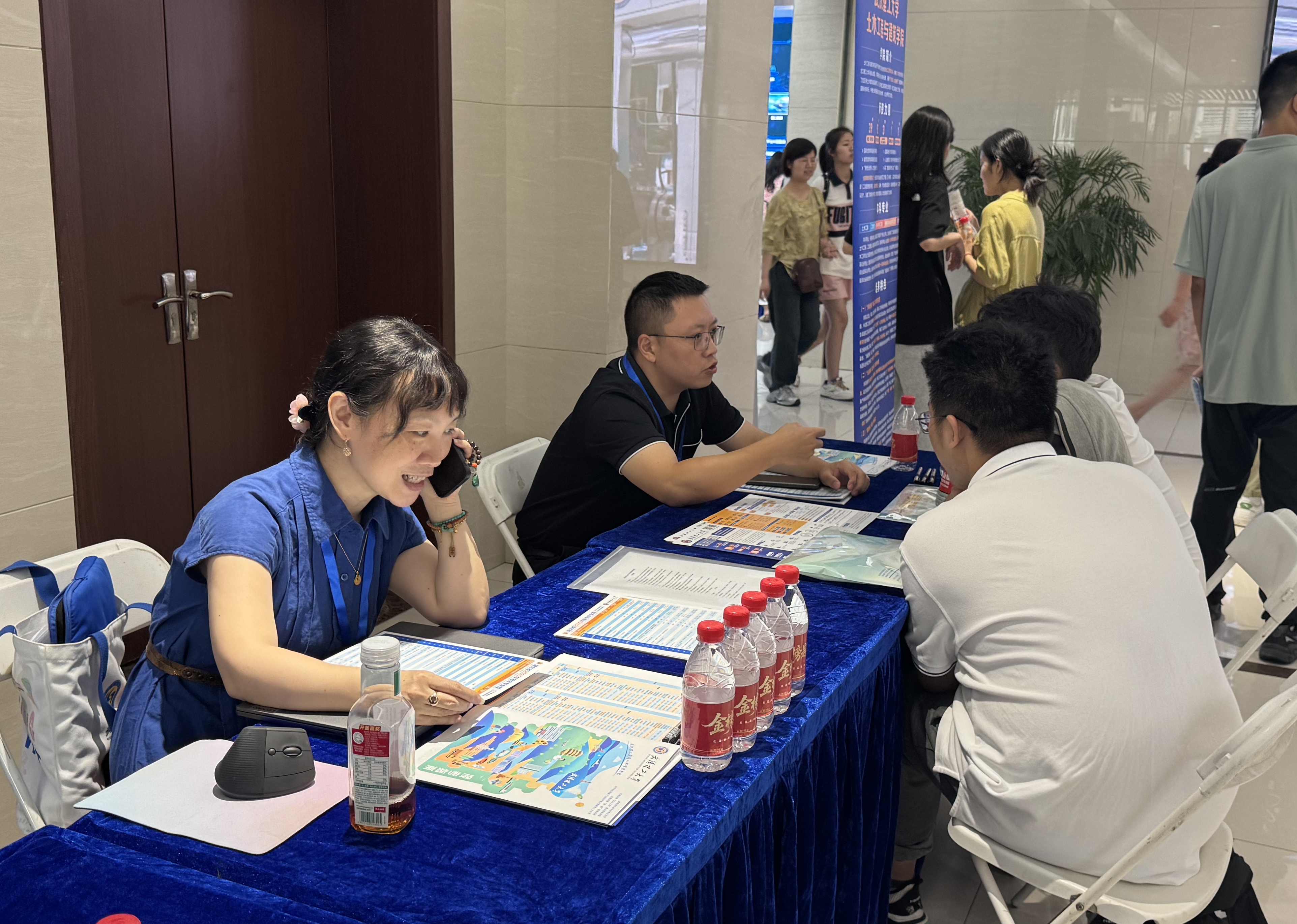 教职工蔡礼雄、陈剑宇、周旭深入现场与考生家长交流。