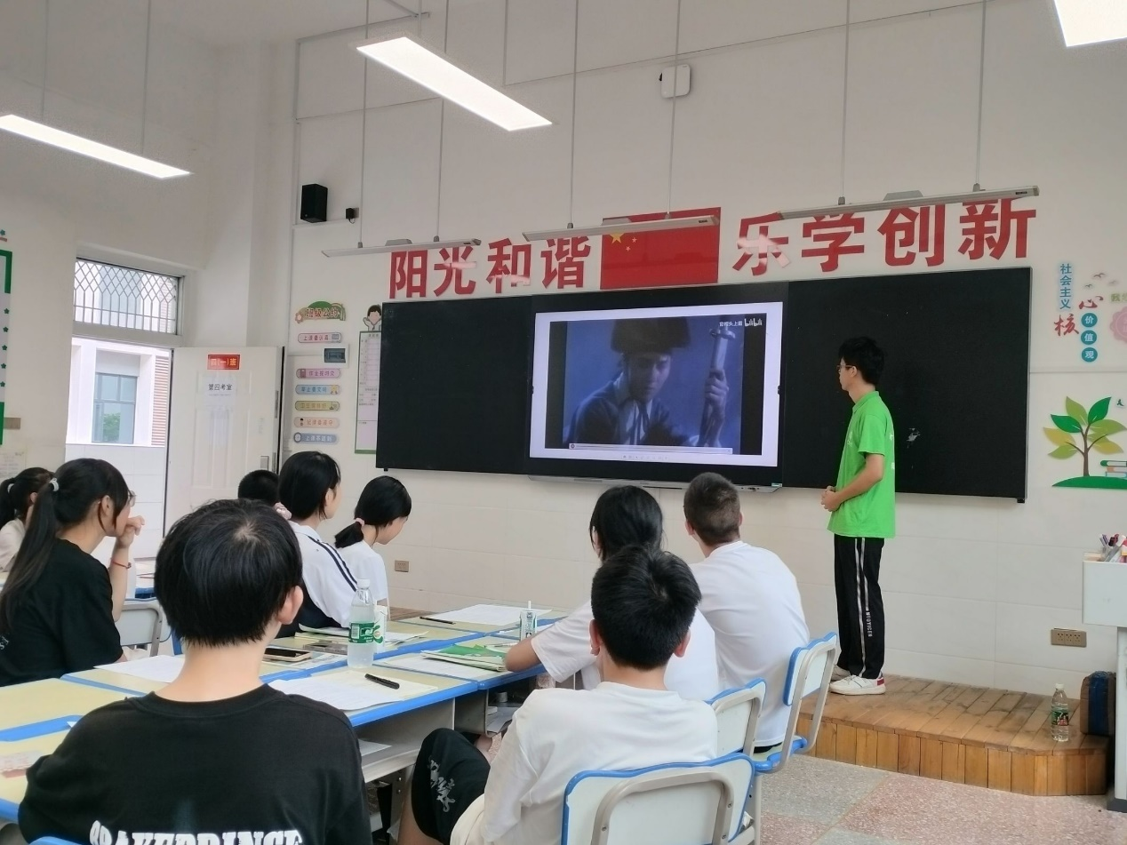 实践队员巧妙设问,引领学生们穿越千年时空,回顾各自心中那抹由诗词唤起的温柔记忆。从“床前明月光”到“王师北定中原日,家祭无忘告乃翁。”,学生们不仅温习了旧知,更引发了他们对诗词的无限向往。一段视频将学生们带入了一个全新的诗词世界。视频中,古典诗词与现代影视艺术完美融合,一幕幕搭配着诗句的经典场景,让学生们在视觉与听觉的双重享受中深刻感受到了诗词的魅力与力量。这份独特的体验,让诗词之美更加生动可感,深入人心。