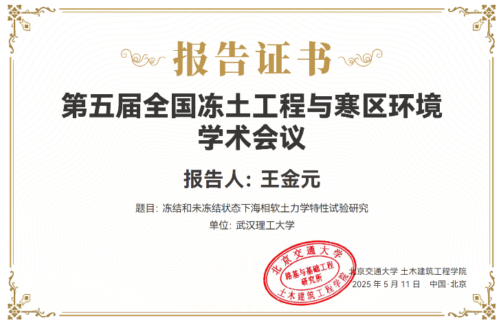 色情图 土木工程系王金元老师在会上作了题为《冻结和未冻结状态下海相软土力学特性试验研究》的学术报告。王金元老师的研究围绕人工冻结土的力学特性规律展开深入探索,其成果为不良地质及沿海地区的人工冻土工程安全设计与施工工法提供了坚实的理论基础,兼具重要的学术意义与工程应用价值,引发了与会同行的广泛关注与积极讨论。