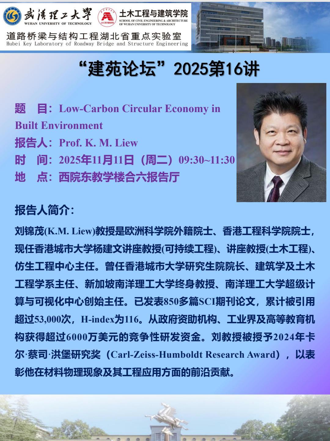 “建苑论坛”2025第16讲 主题:Low-Carbon Circular Economy in Built Environment