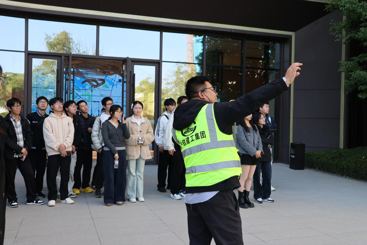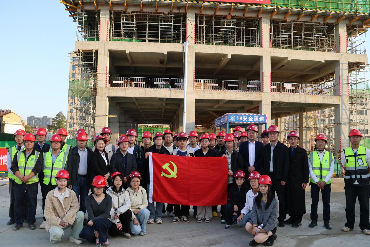 随后,师生党员实地走访了中铁阅湖郡住宅项目与永丰工业园项目现场。项目负责人详细讲解了工程施工中的技术应用、绿色建材使用、智能质量管控系统等情况。同学们一边仔细观察施工工艺,一边记录关键技术要点,一边向项目施工人员问题请教,直观感受到理论知识与工程实践的深度融合,纷纷表示“这样的实地交流比课本学习更有冲击力”。