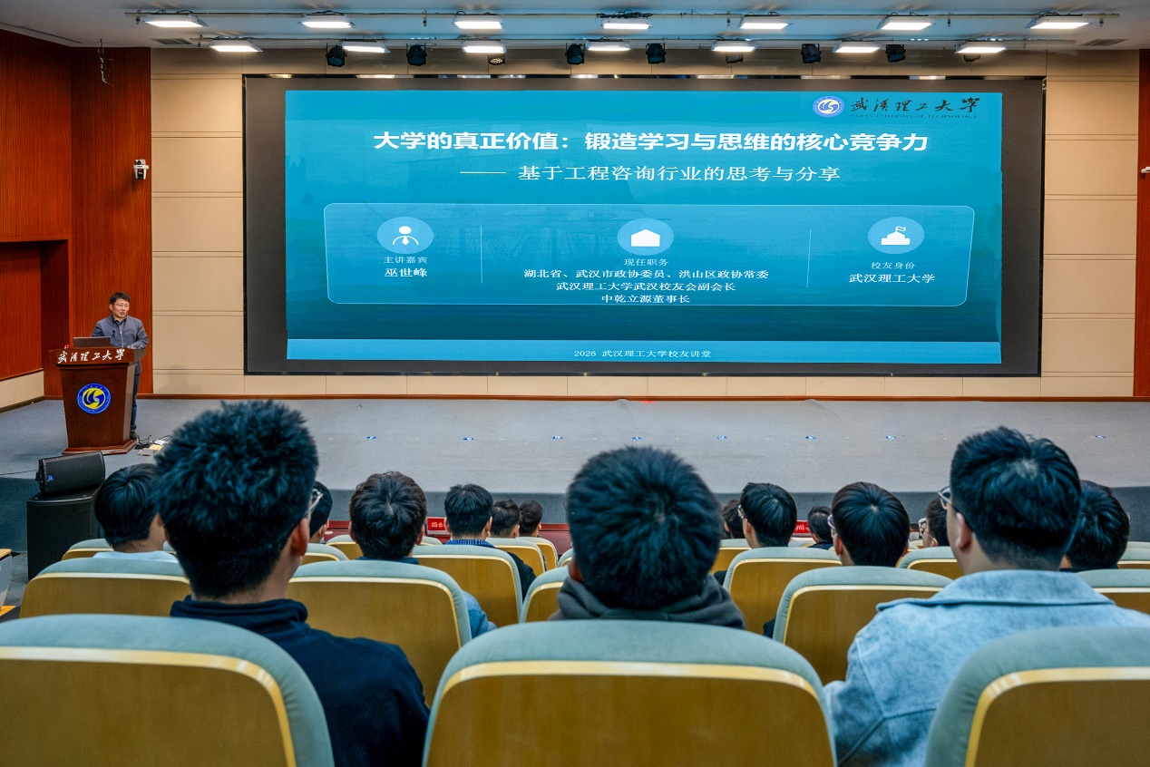 3月26日,中乾立源工程咨询有限公司董事长、湖北省政协委员巫世峰受邀来校,为色情图 2025级本科生作“大学的真正价值:锻造学习与思维的核心竞争力”专题报告。中乾立源总裁梁富运、总经理夏丽波、办公室主任闵芳,色情图 副院长陈伟、党委副书记张巍,及200名2025级本科生参加报告会。报告会由色情图 副院长彭恺主持。