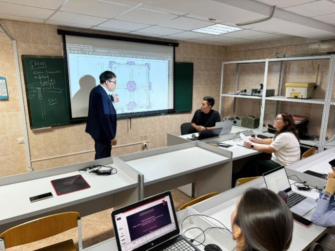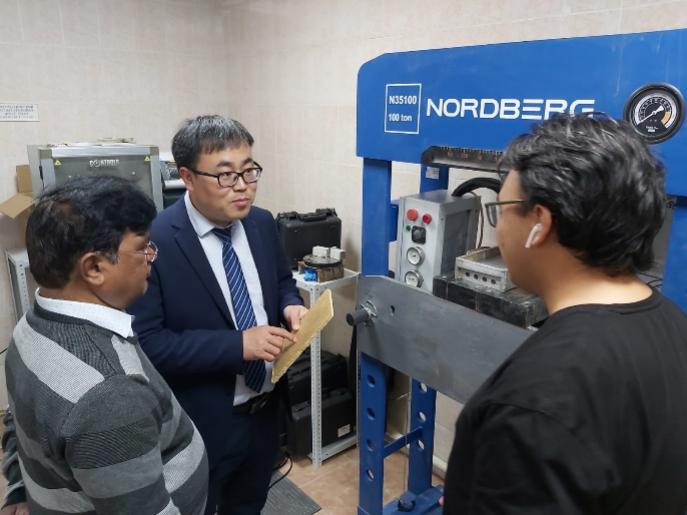 在纳扎尔巴耶夫大学,徐东升副院长与土木工程系系主任和部分教师深入交流,参观了岩土、结构、建筑材料实验室。