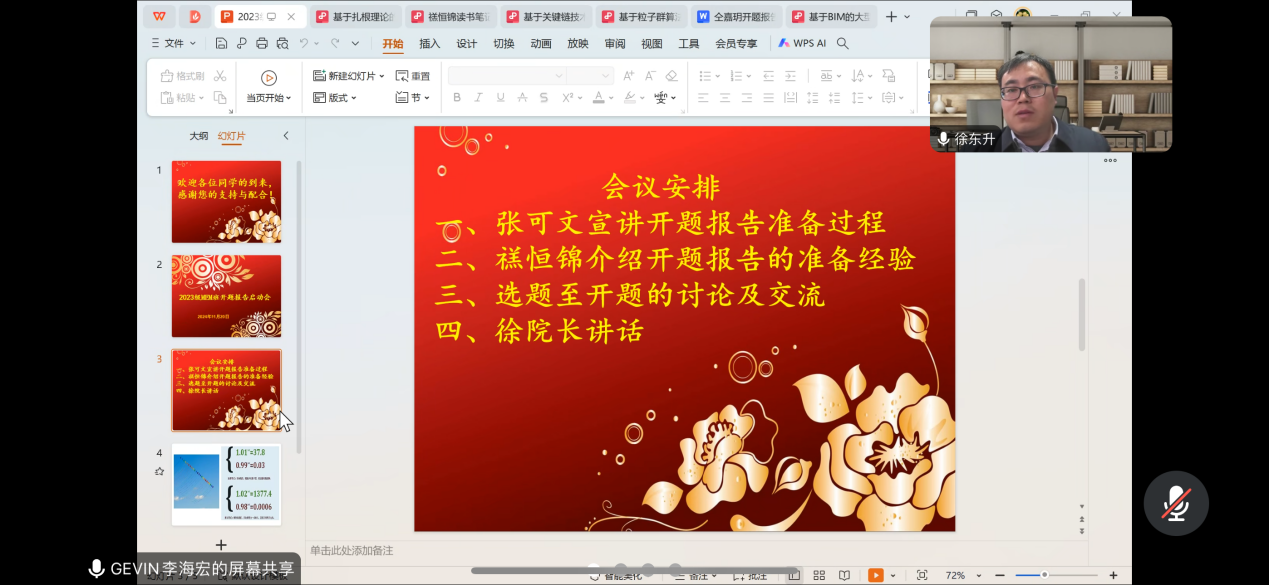 最后,徐东升副院长发表了总结性发言。他首先高度肯定了此次交流会的重要性和积极意义,指出它为同学们提供了一个宝贵的平台,用以分享和学习开题过程中的宝贵经验。随后,徐院长详细阐述了开题报告的重点所在,包括研究问题的明确界定、研究方法的科学选择、以及预期成果的清晰表述等。他强调,开题报告不仅是研究生学术生涯的起点,更是其科研能力和创新思维的一次全面展现。最后,徐院长鼓励所有同学珍惜这次机会,认真对待开题报告的每一个环节,为后续的科研工作打下坚实的基础。