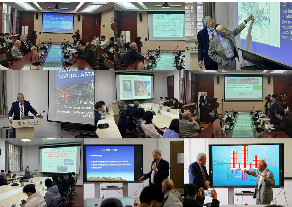 本次学术沙龙聚焦于两位教授的科研范畴,共策划了三场活动,内容涵盖六个精彩的学术演讲。在演讲环节中,两位学者依托自己丰富的研究经历和实践成就,以通俗易懂的方式阐述了岩土工程领域的最新挑战与应对策略。Yoshinori Iwasaki教授借助具体案例,展示了他在大阪地震灾害研究及深基坑施工监测方面的成果,并深入探讨了文化遗产地质保护中的工程难题,特别是针对巴戎寺,他详细分析了自然侵蚀、人为因素及周边环境变化对该遗址的威胁,同时,基于实地监测数据,探讨了为防止巴戎寺失稳而采取的一系列保护措施。另一方面,Askar Zhussupbekov教授着重分享了他在中亚地区地震与采空区地基研究中的实践经验,详细介绍了新首都阿斯塔纳地区基桩设计优化的最新成果,特别是该地区采用明挖法进行地下空间开发的过程,这包括前期的地质勘探、通道与设施建设、达到设计深度后的防水措施,以及最终的回填与恢复工作。他着重阐述了如何精准规划并应用专业技术,以确保所构建的地下空间既耐用又功能齐全。